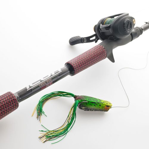 Using our American sourced pre-preg with an engineered and upgraded epoxy; we have created one of the lightest rod blanks on the market today. Our ICON blanks are un-sanded, which helps protect the blank with an epoxy encapsulation on top of adding a signature look with added impact resistance. The John Crews ICON frog rod still has the signature red/black Cashion carbon fiber / fiberglass grips. We have added American Tackle components, such as the micro-guides to not allow wasted energy and give you even more distance on your casts. A comfortable exposed reel seat that cover’s the rivets but does not sacrifice the feel of the bite in any way.